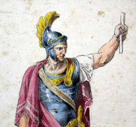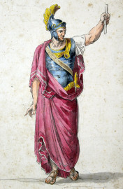 Soldato romano, tecnica mista su carta, cm 25x17, XIX secolo, (macchie).