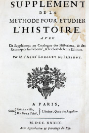 Supplement de la mèthode pour étudier l'Histoire, dell'Abate Lenglet du Fresnoy, 2 vol., Parigi, 1739
