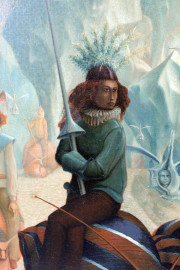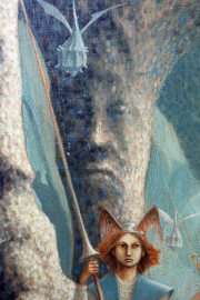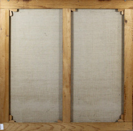 Paesaggio surrealista con figure, olio su tela, cm. 127x127.
