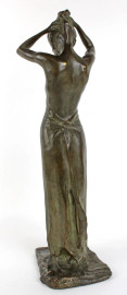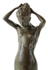 Fanciulla che si lega i capelli, scultura in bronzo, altezza cm. 47x15,5x13