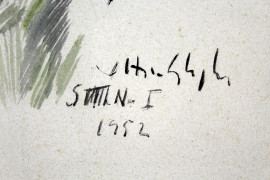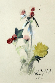 Valentino Ghiglia, Fiori, acquerello su carta, cm 37x26, datato 1952, entro cornice
