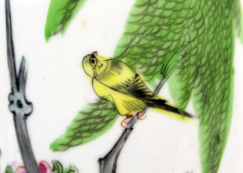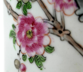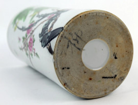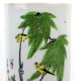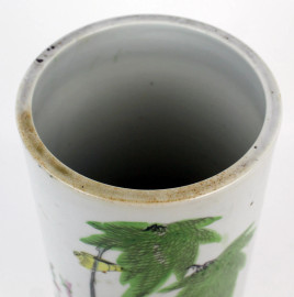 Vaso cilindrico in porcellana policroma, altezza cm 28,5, Cina, XX secolo.