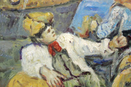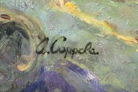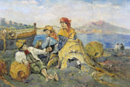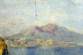 Veduta del Golfo di Napoli con figure, olio su tavola, cm 40x50, firmato A.Coppola, entro cornice