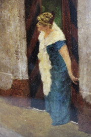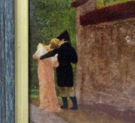 Viale con figure, multiplo su carta, cm. 23x18, fine XIX secolo, entro cornice, (difetti).