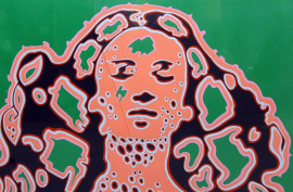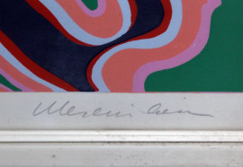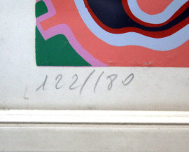 Volto di donna, multiplo a colori su carta, cm. 48x69, firmato, entro cornice.