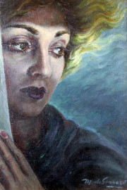 Volto di donna,olio su cartone telato 40x30cm, firmato, entro cornice.