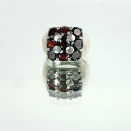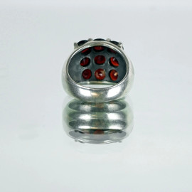Anello in argento 925 e granati color bordeaux, cm 1,5x2,5.