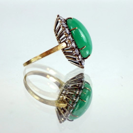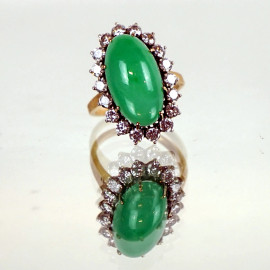 Anello in oro giallo 18 KT con brillantini e giada centrale, gr.8,5, marcato Tiffany
