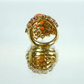 Anello in oro giallo 18 KT con brillantini e zaffiri multicolore, gr.19,2