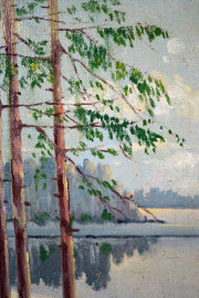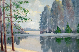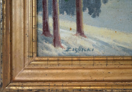 Artista polacco del XX secolo, Paesaggio innevato, olio su tela, cm 30x40, firmato Ziebicki, entro cornice.