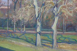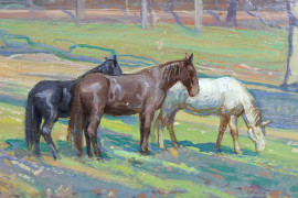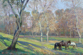 Parco con cavalli, olio su cartone, cm 34x49,5, entro cornice.