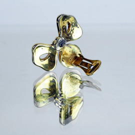 Bijoux Cascio, paio di orecchini a foggia di fiocchi in metallo dorato con finte perle e strass, cm 2,5x3,5, (segni di utilizzo).