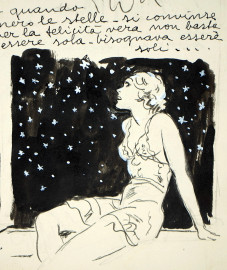 Figure femminili con didascalie, tecnica mista su carta, cm 29x22,5, (lievi difetti sulla carta).