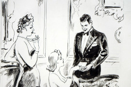 Scena galante nel foyer, tecnica mista su carta, cm 25x22,5, (lievi difetti sulla carta).
