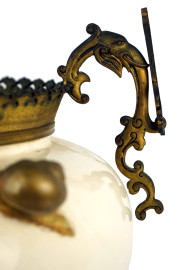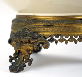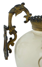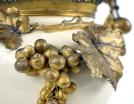 Cachepot in porcellana con applicazioni dorate a rilievo raffiguranti pampini d'uva e lumaca, base e finiture in bronzo dorato, cm h 36, inizi XX secolo.