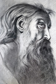 Ritratto d'uomo con barba, matita su carta, cm 34x23, entro cornice.