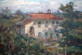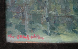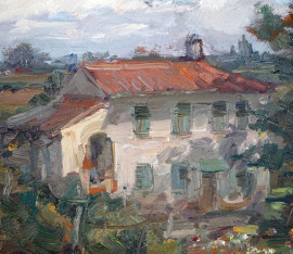 Casolari del Piave, olio su tavola, cm 18x40, entro cornice.