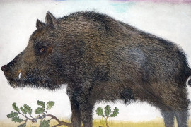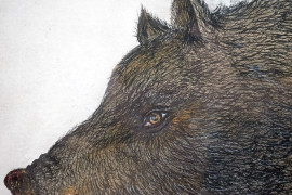 Cinghiale, tecnica mista su carta, cm 38,5x56, entro cornice