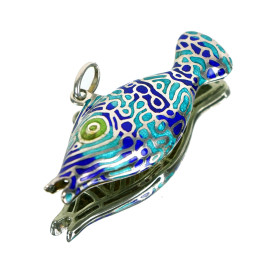 Ciondolo con pesce in argento 925 e smalti, lunghezza cm 6,5.