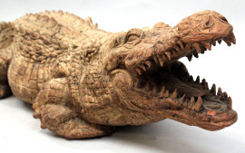 Coccodrillo, scultura in terracotta, cm 124x27, Italia, XX secolo, (piccoli difetti).