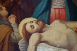 Compianto su Cristo morto, olio su rame, cm 74x50, XIX secolo, entro cornice
