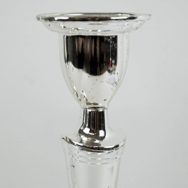 Coppia di candelieri bagnati in argento, cm h 20,5, XX secolo, (lievi difetti).