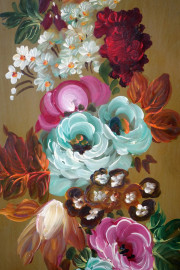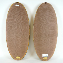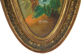 Coppia di nature morte, olio su cartone, cm 52x19, firmate, entro cornici ad assetto ovale.