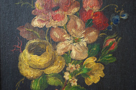 Coppia di nature morte, olio su tela, cm 24,5x18,5, firmate, entro cornici.