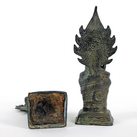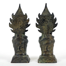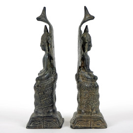 Coppia di sculture in ferro raffiguranti Buddha, cm h 22, arte orientale, XX secolo, (segni del tempo)
