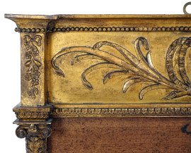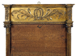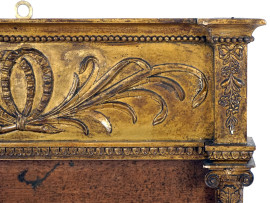 Cornice in legno dorato ed intagliato, XIX secolo, montanti a colonne scanalate, cimasa decorata a motivi fogliacei e floreali, cm h 94x55, (segni del tempo).