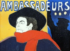 Da Henri de Toulouse Lautrec (1864-1901), Ambassadeurs Aristide Bruant dans son cabaret, riproduzione a stampa, cm 29x19, entro cornice.