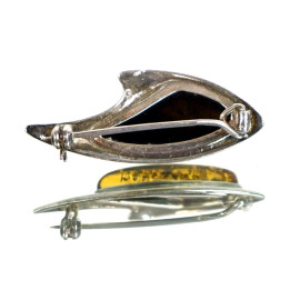 Delfino, spilla in ambra e argento, lunghezza cm 4.