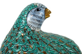 Due quaglie in porcellana policroma, particolari dorati, alt. max cm 14, Cina, XX secolo.
