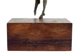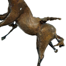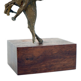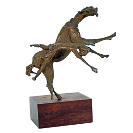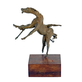 Fantino a cavallo, scultura in bronzo, cm h 16, base in legno, firmata Cecco Bonanotte, (difetti).