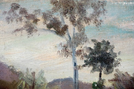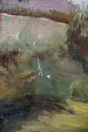 Paesaggio, olio su cartone telato, cm 45x35, (difetti).
