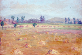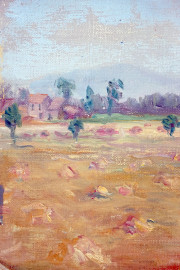 Paesaggio, olio su cartone telato, cm 19x26, entro cornice.