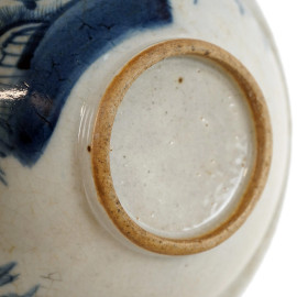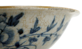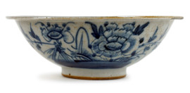Grande ciotola in porcellana bianco e blu a decoro di fiori, cm h 9, diam. cm 25,5, Cina, XX secolo, (sbeccatura).