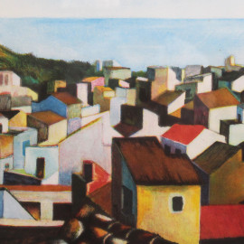 Tetti, prova d'autore a colori, cm 66x86, entro cornice.