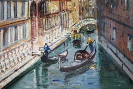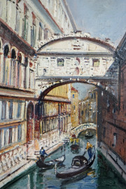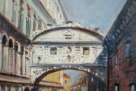 Il Ponte dei Sospiri a Venezia, olio su tavola, cm 35x26,5, firmato, entro cornice.