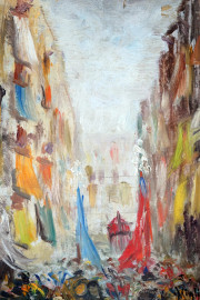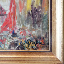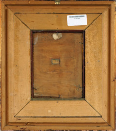 Il Santo patrono, olio su compensato, cm 20x14, firmato, entro cornice.