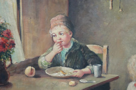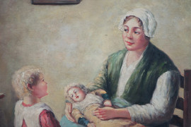 Interno familiare, olio su tela, cm 80x100, XX secolo