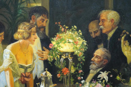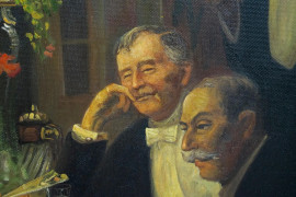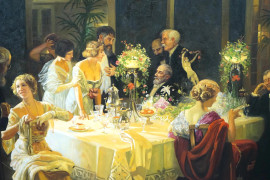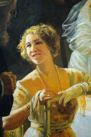 Jules Alexandre Grun (1868-1938) Copia da, The End of Dinner, olio su tela, cm 60x90, firmato, entro cornice.