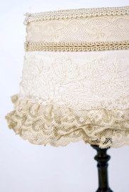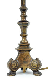 Lampada da tavolo in bronzo, paralume con dettagli ricamati, cm h 41,5, prima metà XX secolo, (segni del tempo).