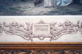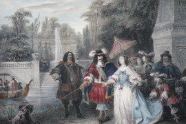Le parc, stampa acquerellata, cm 38x51,5, XIX secolo, entro cornice.