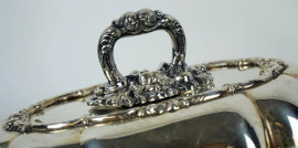 Legumiera in metallo argentato, cm 15x35,5x26, XX secolo, (segni del tempo).