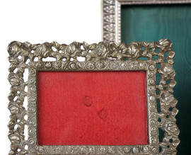 Lotto composto da quattro cornici in argento ed una in bronzo, misure max cm 29,5x23, metà XX secolo, (segni del tempo).