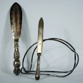 Lotto composto da tre oggetti in Sheffield, misure max cm 25x14,5, XX secolo, (segni del tempo).