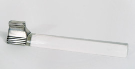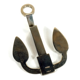 Lotto composto da un apribottiglie ad ancora marcato Gucci ed una lente di ingrandimento da tavolo con presa in argento, lunghezza max cm 16,5, XX secolo, (difetti).