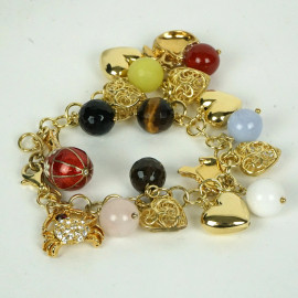 Lotto composto da una collana saliscendi ed un bracciale in argento 925, ciondoli smaltati in materiali diversi, lunghezza max cm 42.