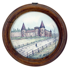 Lotto composto da una tecnica mista ad assetto tondo, quattro dipinti ad olio ed una lettera miniata, misure max cm 17,5x12,5, epoche diverse, entro cornici, (difetti).
